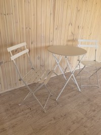 Лаконичный комплект садовой мебели. Складные стулья и столик не занимают много места для хранения, а компактные размеры и небольшой вес позволяют брать их с собой на пикник или дачу. Комплект изготовлен из металла, а поверхность покрыта слоем краски, которая обеспечивает влагостойкость и легкий уход. Изогнутые ножки с подпятниками позволяют устойчиво установить мебель на любой поверхности. Простой дизайн комплекта дополнит любой дачный участок, веранду или фудкорт. Стулья выдерживают нагрузку до 120 кг.